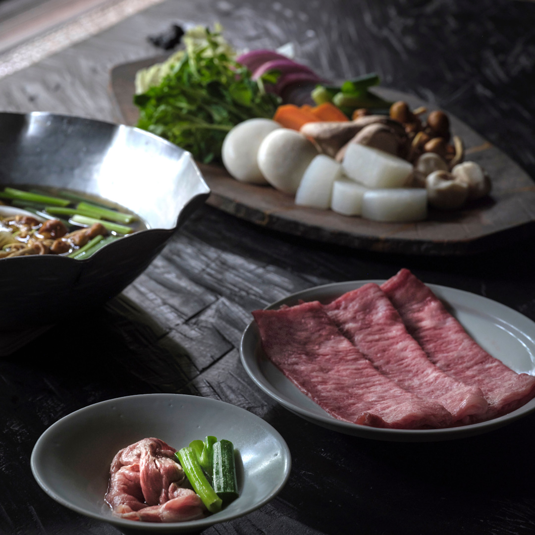 - 2人前:牛サーロイン、九条葱、赤玉葱、白菜、丸大根、豆苗、なめこ、エリンギ、金時人参、お麩、小餅、蓮根麺、柚子胡椒、特製だし ※牛サーロインは210gとなり、枚数はそれぞれ異なります。