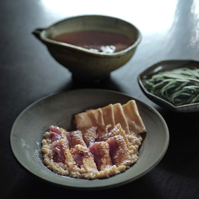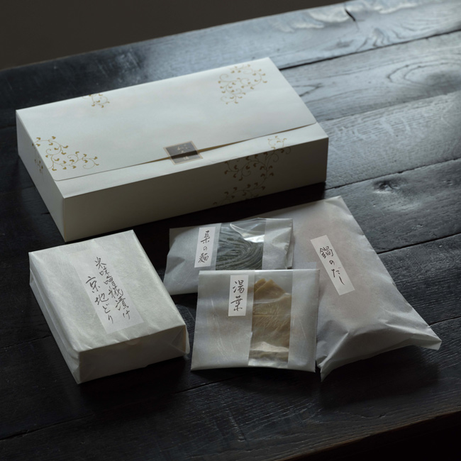 京地どりの米味噌糀漬け、湯葉、桑麺、特製だし ※野菜は入っておりません。